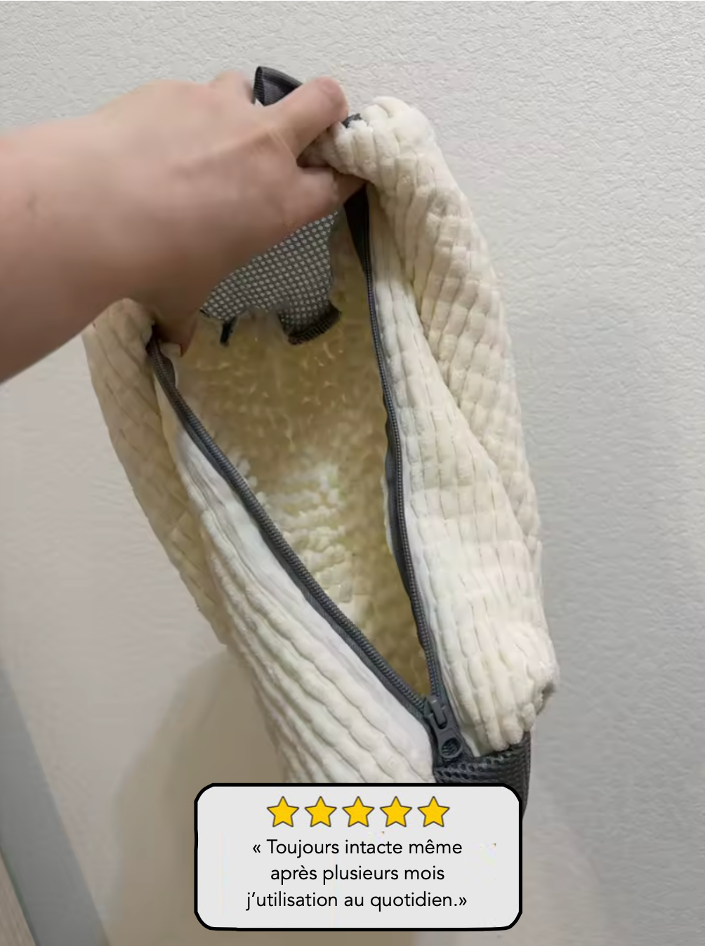 “Le sac va-t-il tenir dans le temps ?”: Oui. Grâce à ses matériaux robustes et à sa conception solide, Protecteur + est prêt pour des dizaines de lavages.