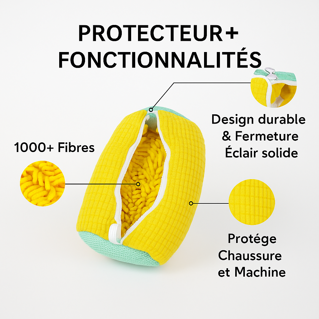 Le tissu renforcé et la microfibre intérieure enveloppent vos chaussures pour un nettoyage efficace, même après passages dans la boue, la poussière ou la pluie. Résultat : baskets propres, sans éraflure, sans déformation — comme neuves, cycle après cycle.